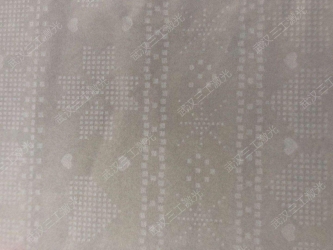 查看更多 >>面料激光刻花指利用激光雕刻技術(shù)對(duì)面料表面進(jìn)行雕刻,使得材料表面的質(zhì)地、顏色和反射率發(fā)生變化,使面料表面形成一定的花紋圖案。具有類(lèi)似印花或壓花的效果,顏色可以同一...