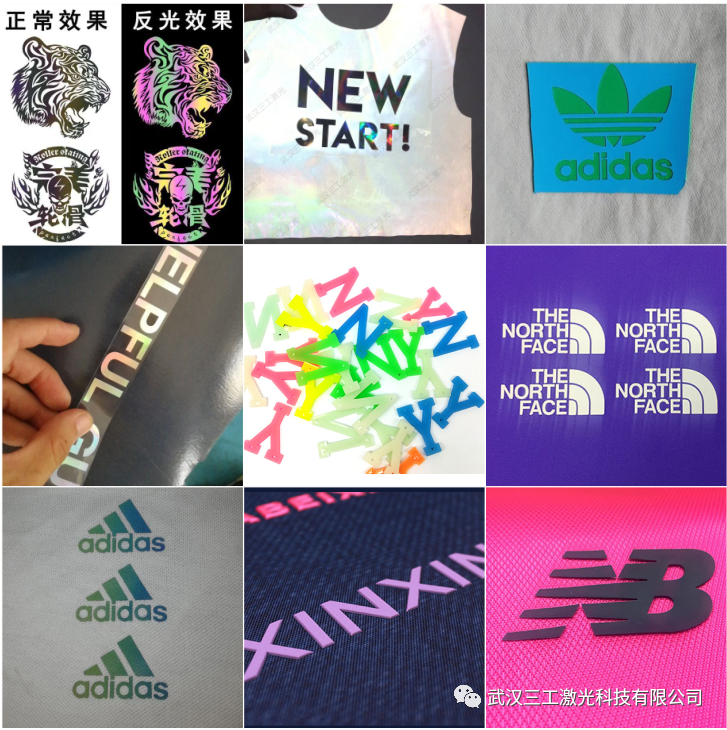 適用于運(yùn)動服飾、休閑服飾、童裝、特種服飾、衣帽、鞋業(yè)、等行業(yè)的激光打標(biāo)和模切。PVC刻字膜、TPU刻字膜、PU亞光刻字膜、夜光刻字膜、鐳射軟金屬刻字膜、噴繪打印膜、反光刻字膜、植絨刻字膜、金蔥刻字膜、反光絲印膜、弱溶劑打印膜、裝飾膜、皮標(biāo)、布標(biāo)等材料。